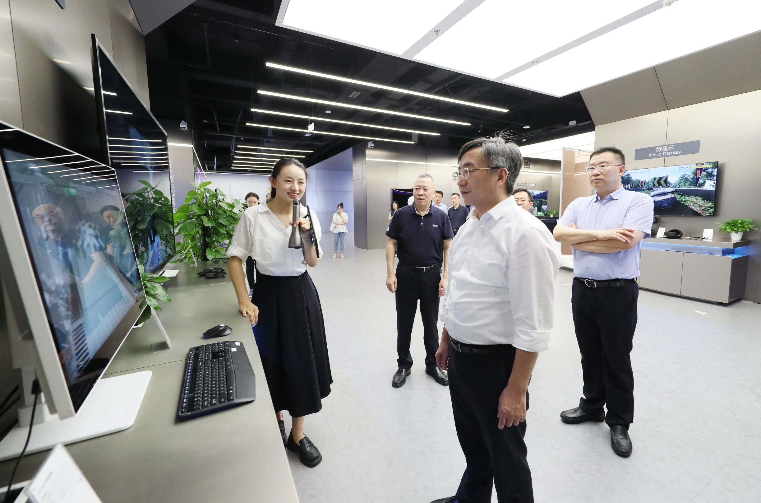 北京市国资委党委书记、主任吴礼顺在京东方技术创新中心、燕东微展厅参观了解产业发展情况